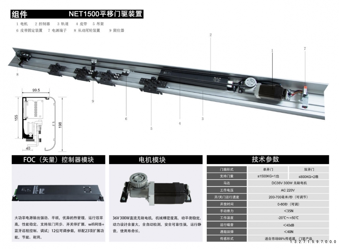 门重匹配:单扇门重 1000-1500kg 选择 1500kg 超重型电机,超过 1500kg 建议选择定制化解决方案